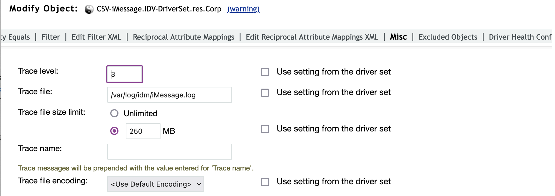 - In the window that appears, navigate to the Misc tab and configure the trace as required.